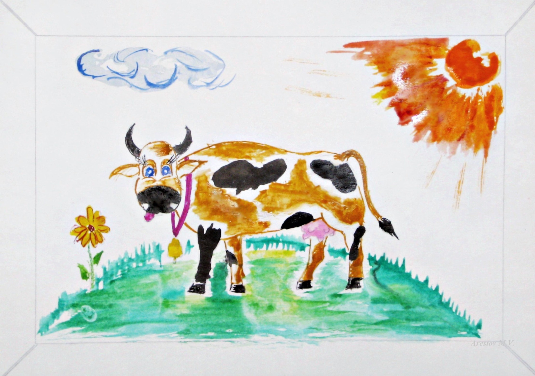 Альбом Неопределенная тематика. Фото "Корова на лугу (рис.)" 466.1 k (2219x1560) Корова на лугу (рис.).JPG