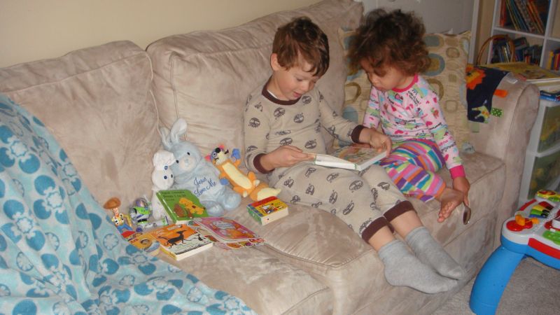 Встал и читает книгу своим друзьям, с которыми спал:))
