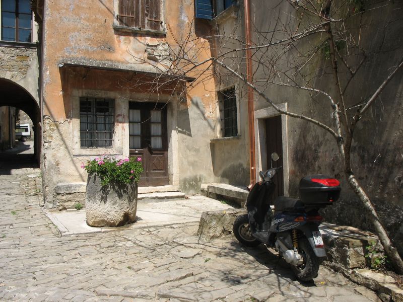 Один из маленьких двориков в старинном городе Мотовун (Хорватия, Истрия)