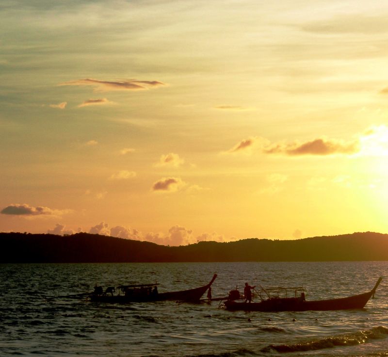 Альбом Острова Тайланда.. Фото "возвращение на закате" 60.1 k (800x736) Fishing boats in Aonang Beach.JPG