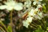 каким бы красивым не было брюшко, но почему то всегда(в большинстве случаев) зрителю хочется видеть голову, желательно пчелку в кадре покрупнее, и более серьезно подходить к выбору фона, особенно если объект в кадре занимает немного места, ну и наконец даже если учесть, что на цветах присутствует рефлекс от листочков,лепестки цветов не должны быть желто - зелеными.
